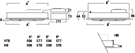 HB – for suspended ceiling with concealed T-bars, symmetrical attachment of ceiling boards (20–22 mm thick). Supplement with fixing brackets for fixed suspended ceiling, see Accessories.