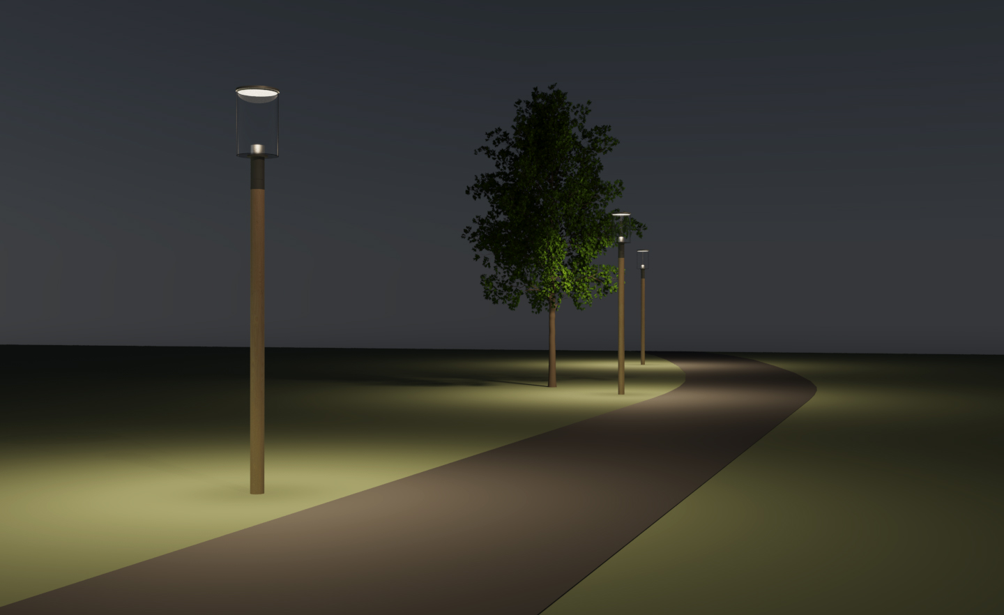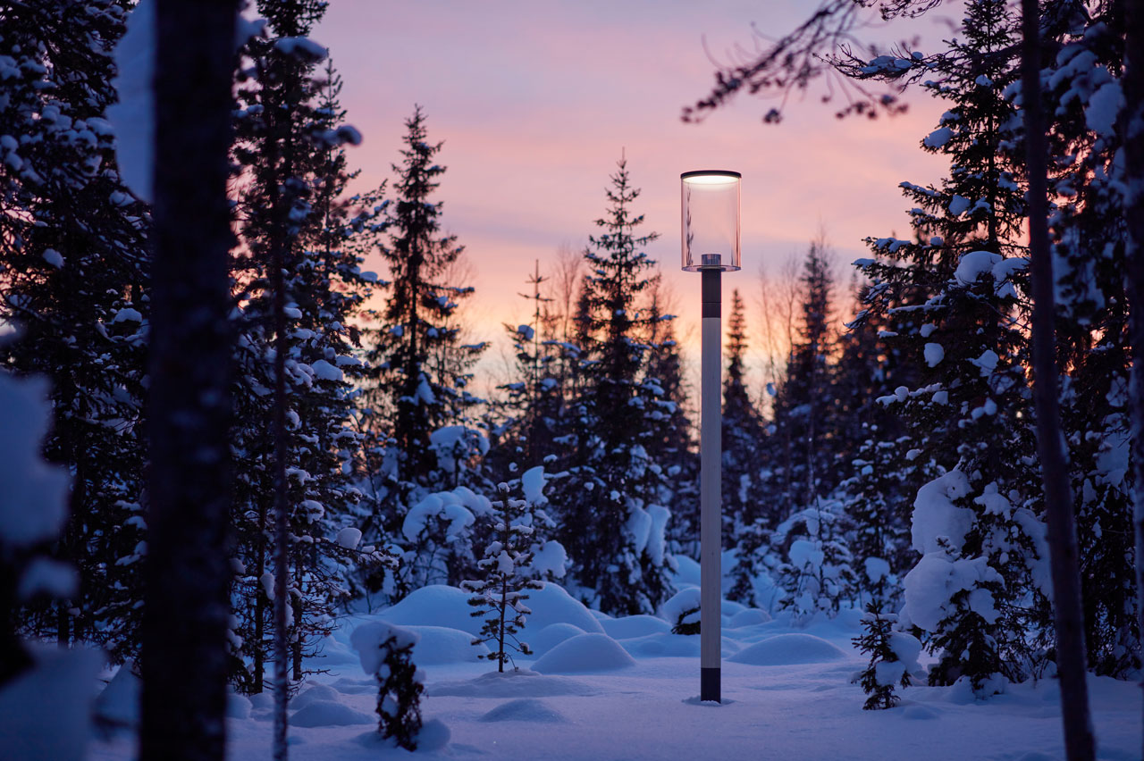 Pure minimalism creating volume without decoration, Kallkälla showcases its environment without demanding attention. The light element combines its modern aesthetics with the natural materials of the post.