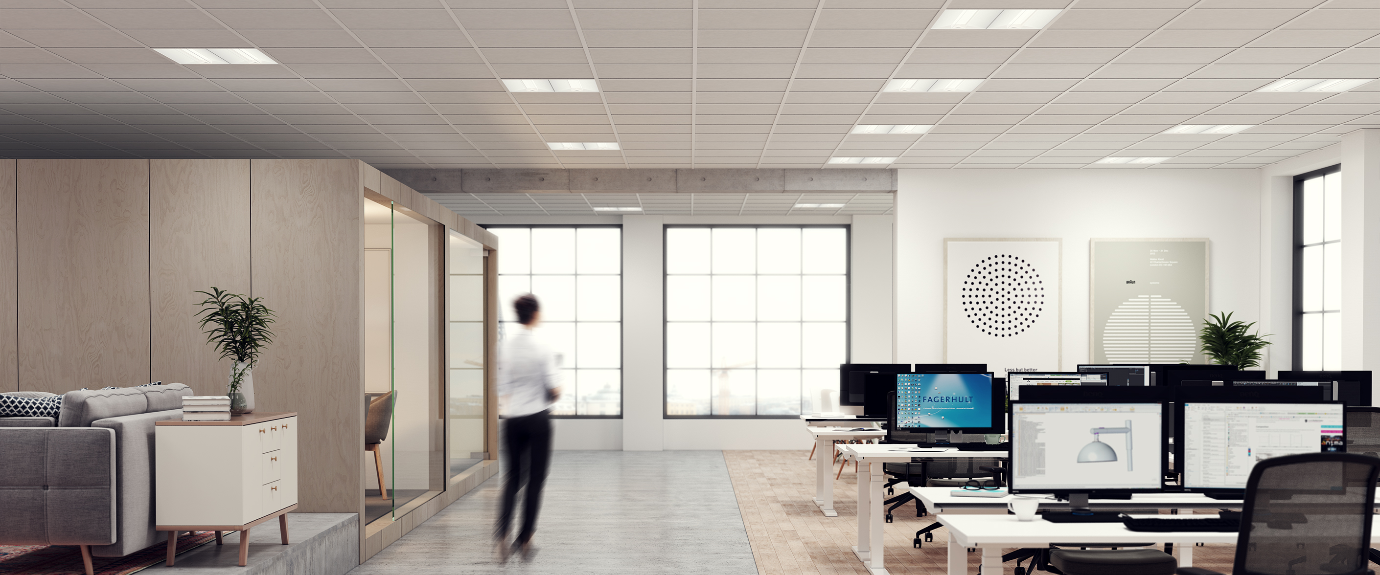 Recessed luminaires in this product family complies with our Twin Dual Driver. This enables power supply to two luminaires with only one driver and up to 4.8 meters between the luminaires. Twin Dual Driver supports light control via DALI or OR. By streamlining the electronics and the product's material composition, we have managed to reduce the total environmental impact of the driver by 45 per cent — while maintaining safety and significantly streamlining both installation and product use.
