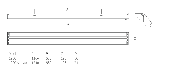 Cable entry at both ends, double Ø19 entry at the centre of the luminaire towards the wall or ceiling. 5-way snap-in terminal block at the centre, 1-phase through-wiring possible.