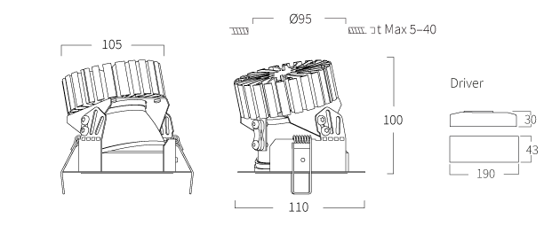 Connections are made to the independent LED driver. The luminaire is delivered with interconnecting cable.