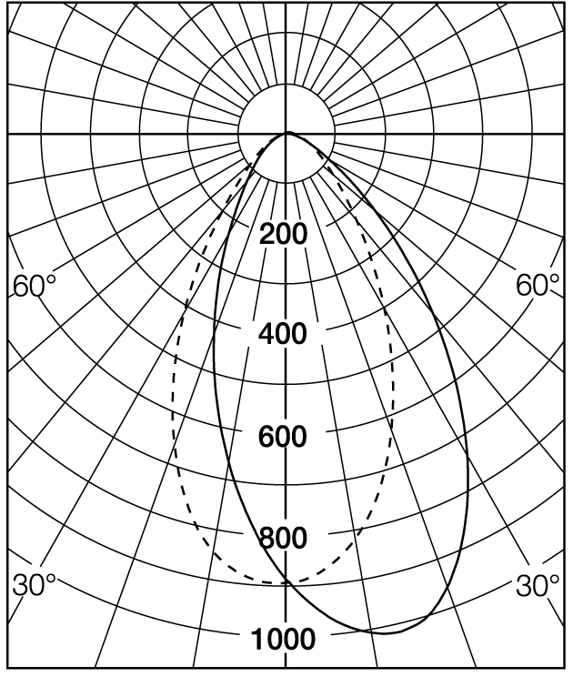 Specular reflector in anodised aluminium. Diffusing frosted glass raised within the reflector above structured enamelled black baffle.