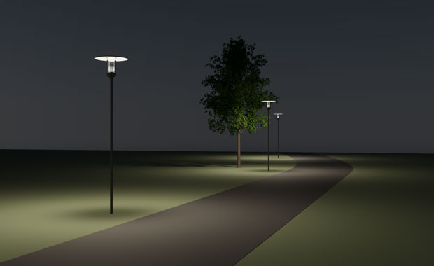 13637 Vivita & Verda 13637A post top park luminaire with shade in modern design. Symmetrical or asymmetrical light distribution. The acrylic décor-rings adds a visible variation. CLO for output consistency as standard.