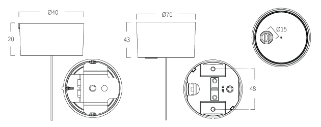 Round ceiling cups – small + large, for T-bars 25 mm, white mains cable (96384+96389)