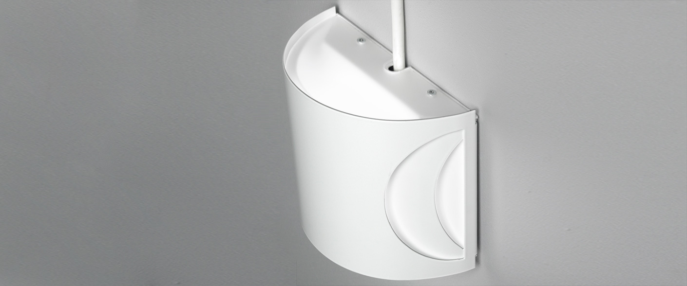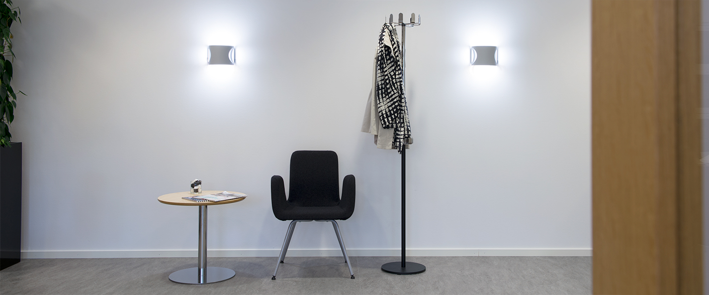 Et solidt og dekorativt vægarmatur til miljøer med mange mennesker i bevægelse med et behageligt afblændet lys.