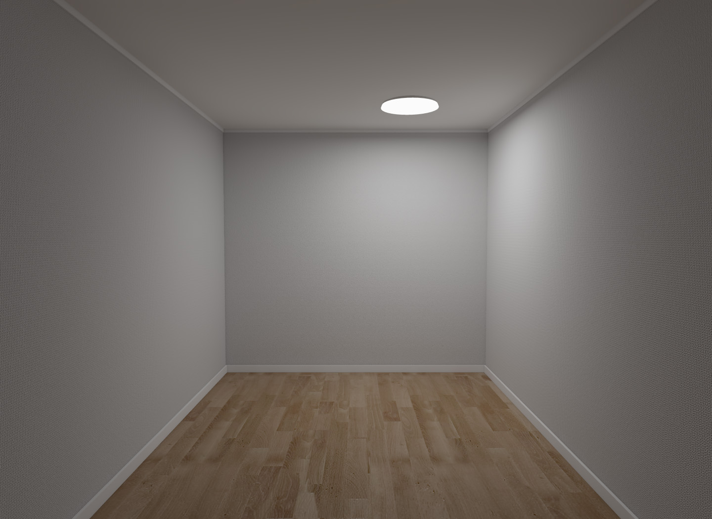 Leuchtenkörper aus Stahlblech in Matt-Weiß (RAL 9016). Acryldiffusor in mattem Opalweiß. Dekorring in Weiß (RAL 9016), Sand (RAL 1019) und Azurit (RAL 5008).