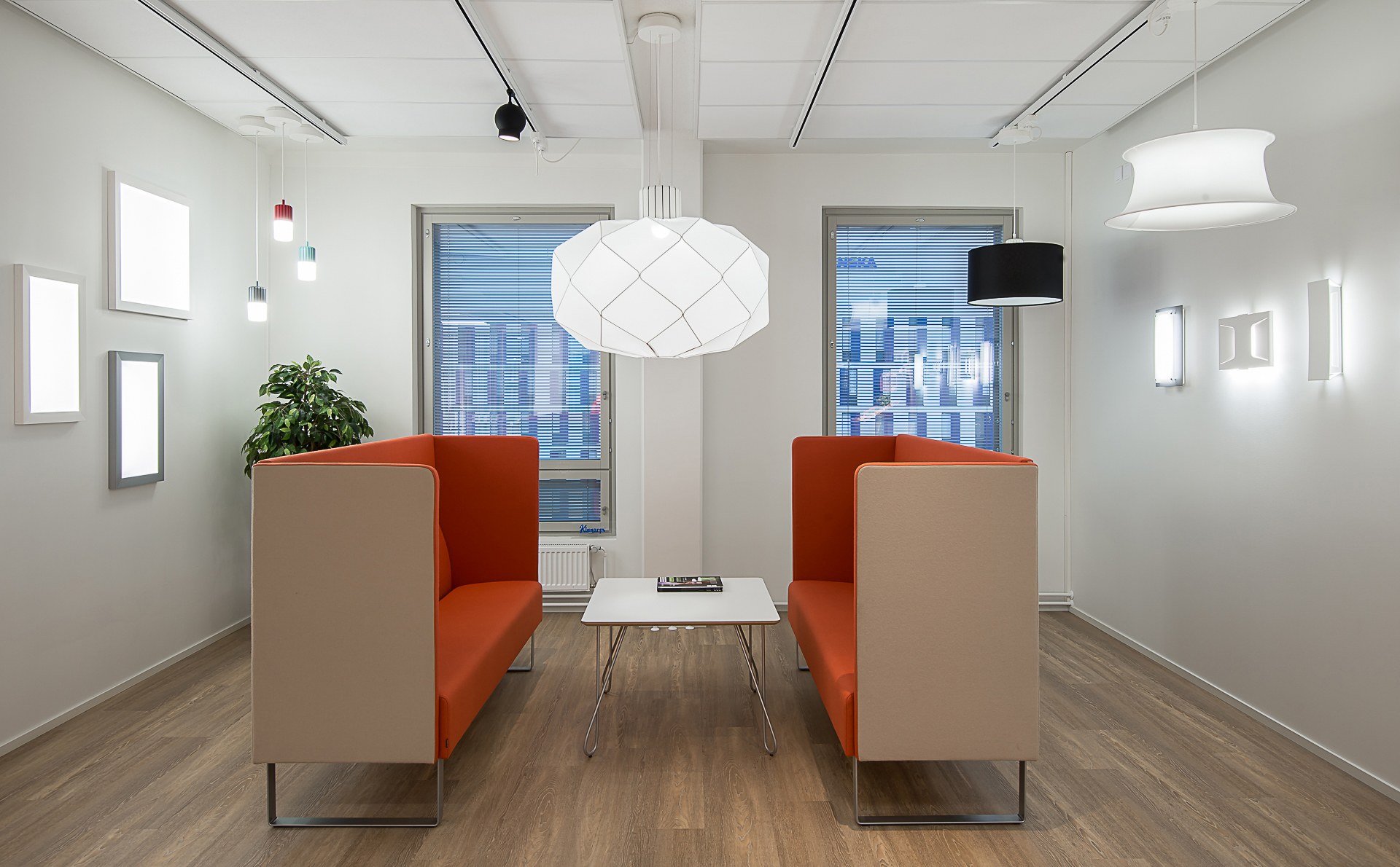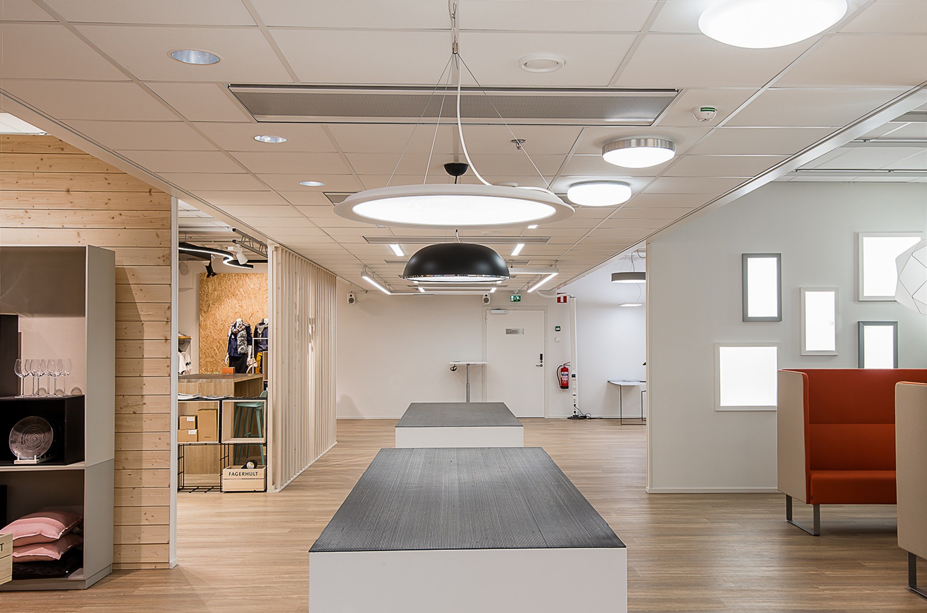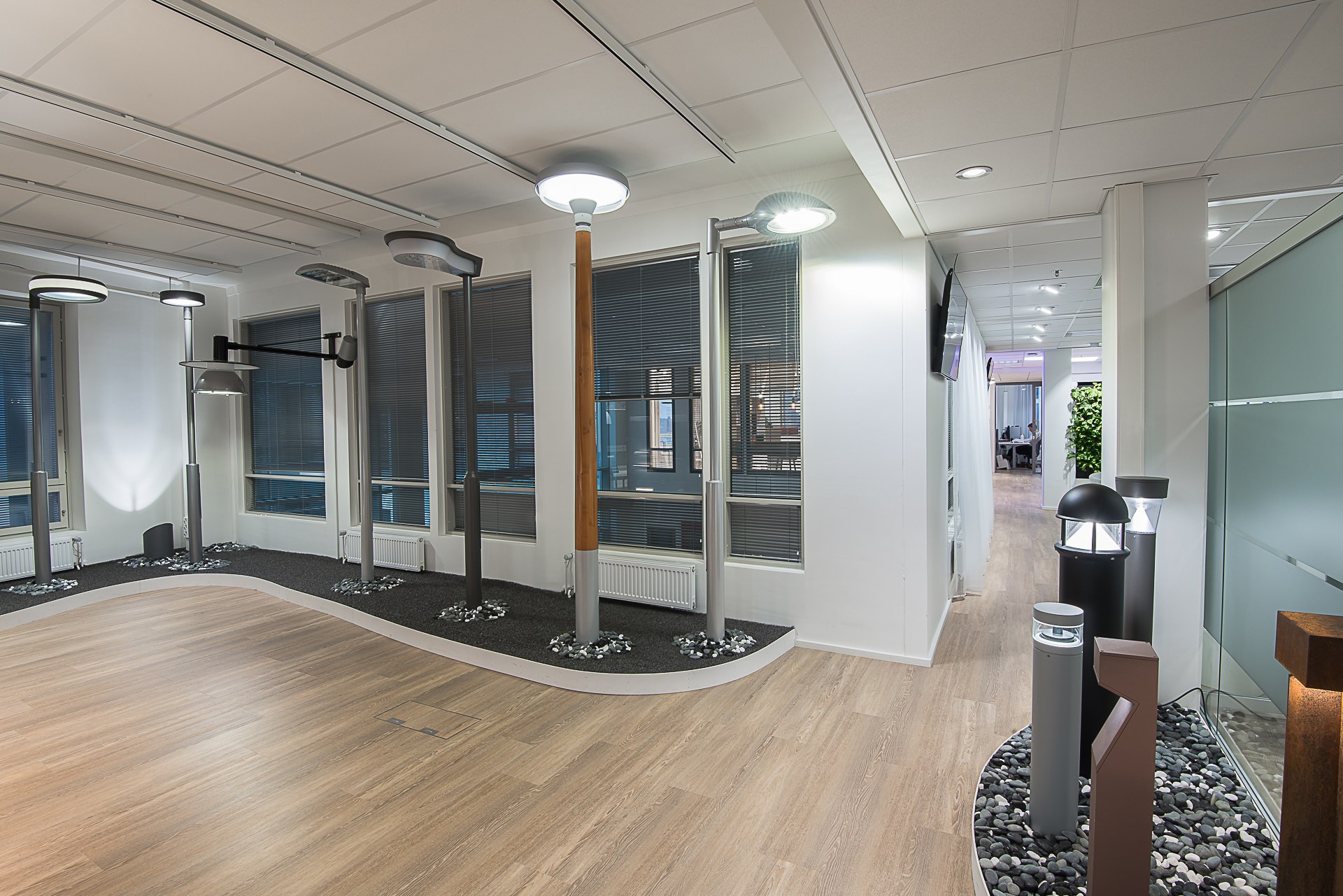 Tutustu Fagerhult Oy:n valaisinnäyttelyyn Business Park Aition uudessa Verdi-talossa.