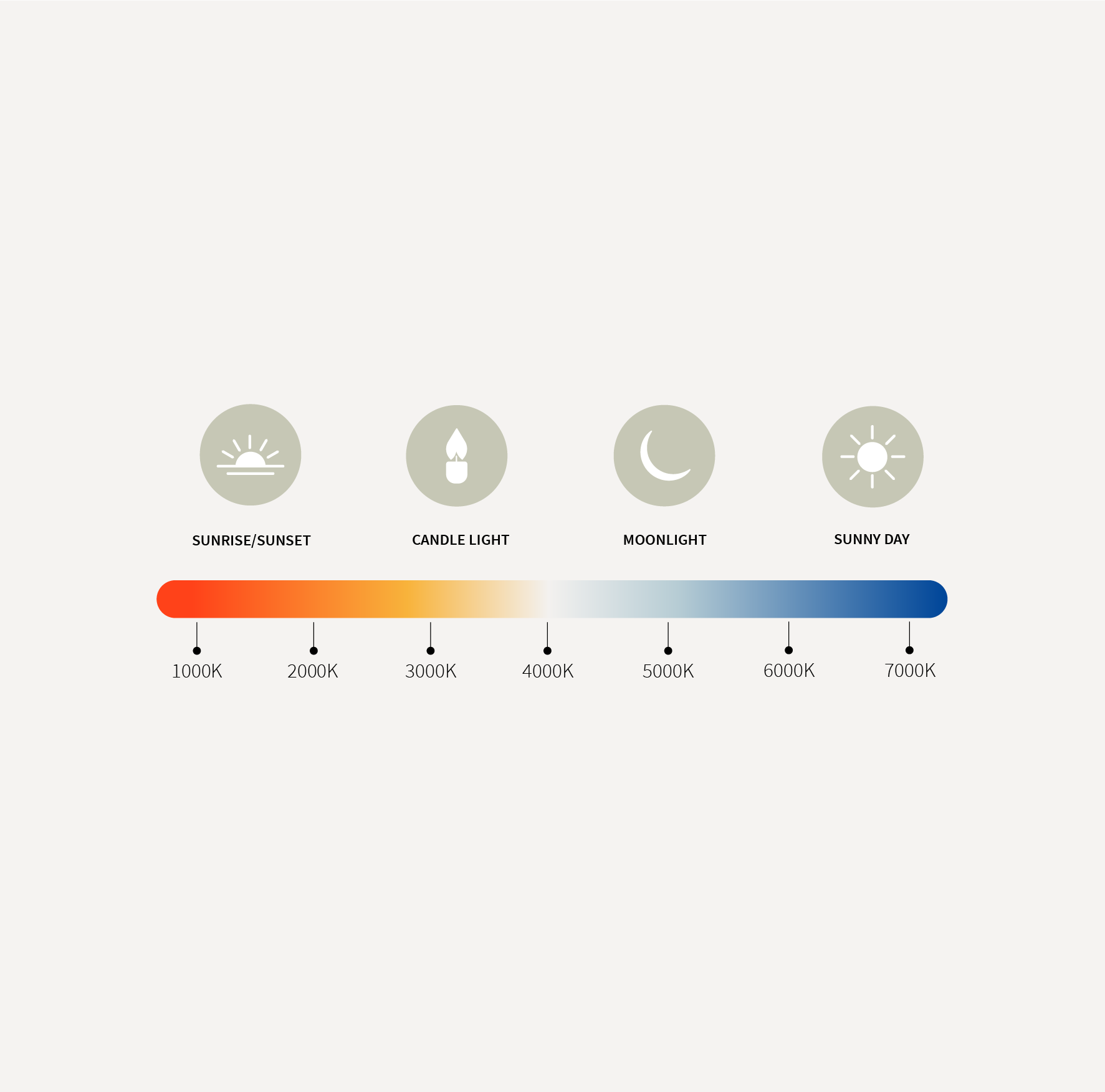 Why is the sky so beautiful? The answer is variety. The sky and the horizon are constantly changing. The strength and colour of the light change depending on the weather and the time of the day. From a biological perspective, it is the actual light intensity that affects us, whereas the colour temperature is related more to emotional and personal preferences. It is now possible to recreate a little piece of the sky through electric lighting, which varies the intensity and colour temperature by means of control.