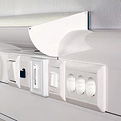 Aluflex 9 utstyres med ønsket antall sterk- og svakstrømuttak. Uttakene er montert i apparatfestetne som er fastmonterte i bunnprofilen. En Fagerhult-tilpasset dekkbrikke gjør at uttaket blir helt glatt montert mot kanalens front. Kanalen kan utstyres med uttak av ulike nasjonale standarder.