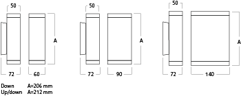 Finns med nedljus eller både upp- och nedljus. Stomme av pressgjutet aluminium och extruderad aluminiumprofil med hög korrosionsresistens. Dubbla lager av pulverlack för UV- och väderbeständighet. Härdat och etsat dekorativt glas. Skruvar av rostfritt stål. Silikontätningar.